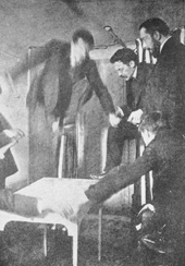 séance the room was shaken, heavy tables were lifted and glued down to the floor by an alteration of their weight. At the third