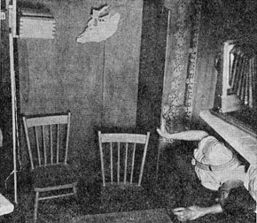 As for the boat's location, Walter had stated that it would be found at the centre of the cabinet and about 2 inches from the top. Actually the tip of the uppermost sail was about 4 inches from the top of the cabinet, and the whole mast was to the left of the centre line. In spite of these small discrepancies between Walter's statements, and the boat's actual location as shown in the photograph, the important thing is that Walter knew fairly closely where it would be found. And 71 days and 41 days before the exposure, both John and Katie had also stated that the ship would be near the top and a little distance out from the cabinet wall. Supporting this prediction, in the stereo view the whole ship stands out several inches from the cabinet wall. It also shows that the