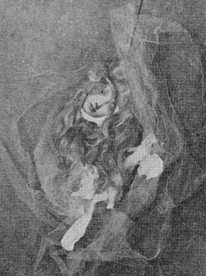 Walter-Dawn: 'The face is ectoplasm and the spirit garments are there. The face is beautiful, but in taking the veil from it, it has not shown as plain as it might. The veil is torn and is not quite