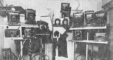 wide-angle lens; one equipped with a quartz lens. Also shown are the flashlight devices which could be fired electrically in a series by the three push buttons. At first magnesium flash powder was used; later it was replaced by photo flash bulbs of the highest speed obtainable. Guests and sitters were encouraged to bring their own cameras and films, thus serving a double purpose