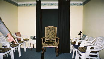 tape recorder in left hand corner, tended by the medium’s wife. |