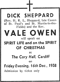an advertisement announcing that the Rev. Dick Sheppard and the Rev. Vale Owen,