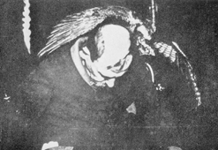 Clairvoyance and Materialization(1) was taken in 1919 in Warsaw. A bird, described by Prof. Pawlowski, of the Massachusetts Institute of Technology, as a hawk or buzzard, was heard to stretch its wings with a whirring sound, accompanied by blasts of wind. It "flew round, beating its wings against the walls and the ceiling; when it finally settled on the shoulder of the medium it was photographed with a magnesium flash, as the camera was accidentally focussed on the medium before, and was ready".