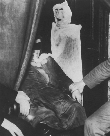 The physical medium Helen Duncan is seen materialising 'Peggy' in a